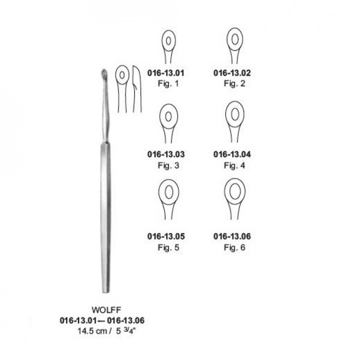 | 016-13.06 | Lupus Curettes, WOLFF, 14.5 cm / 5¾" Ø 7 mm |