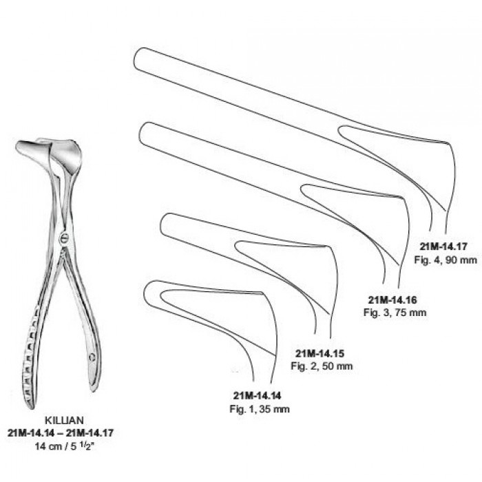 | 21M-14.17 | Nasal Specula, KILLIAN, Fig 4. 14 cm / 5 1/2”, 85 mm |